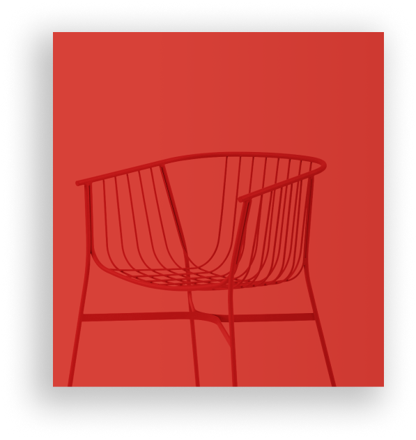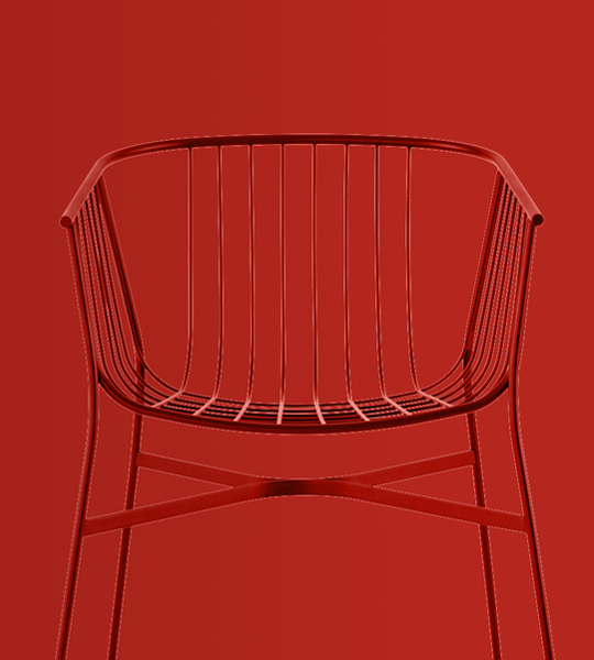 The wire grid of the seat is seemingly suspended from the soft arc of the arm and backrest which creates both comfort and timeless elegance.